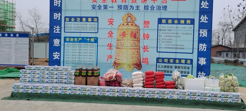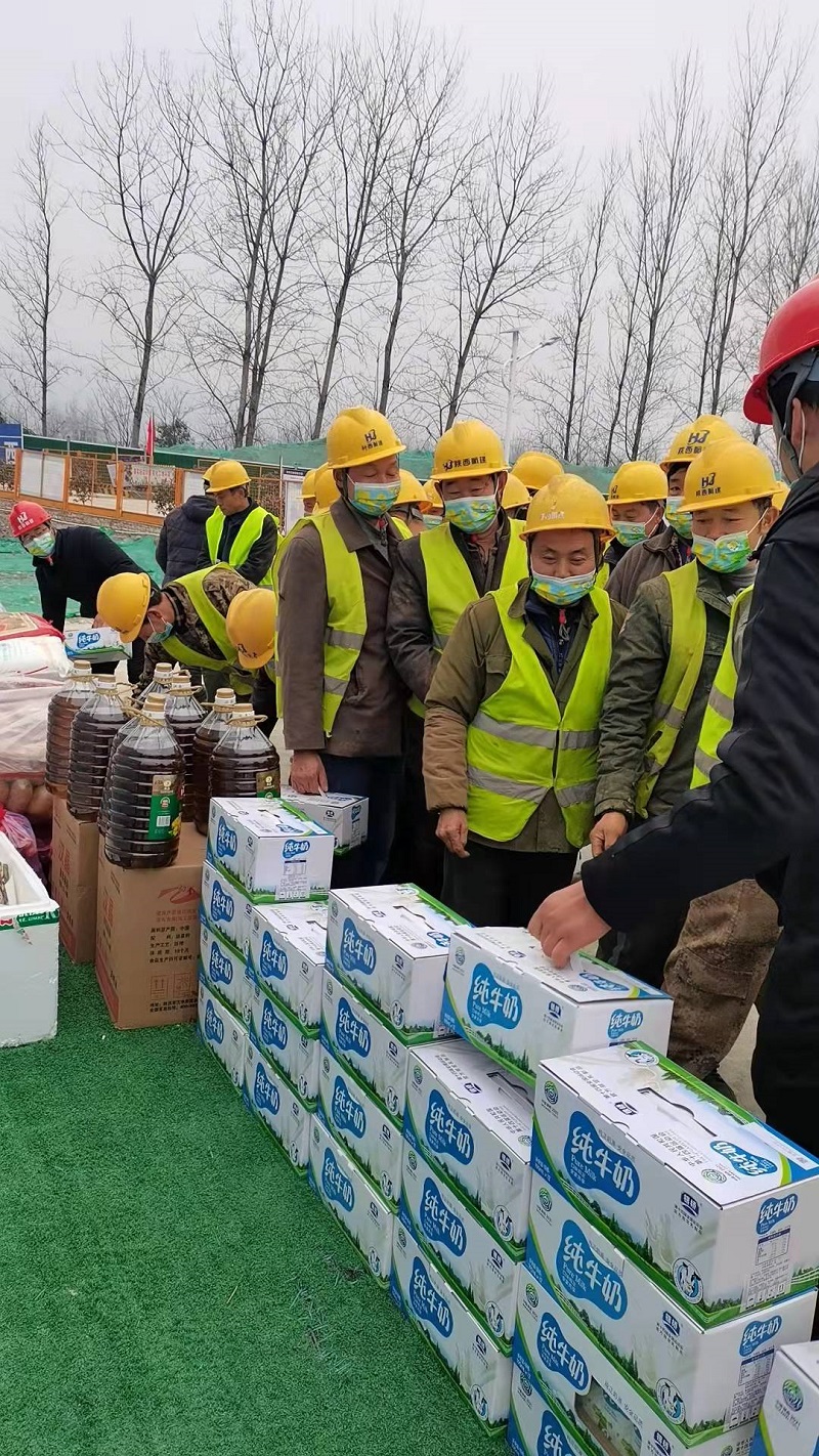 新年伊始,万象更新,一馆一中心项目正如火如荼建设中 ,寒风吹拂中,县委县政府为忙碌的工人们送来温暖。1月3日,县委书记李代斌一行放弃节假日休息时间到一馆一中心项目地慰问战斗在一线的工人,体现了党和政府对每一位工人的关怀 。县总工会为项目部送来一大批粮油食品,发放给施工现场的每一位工人 。