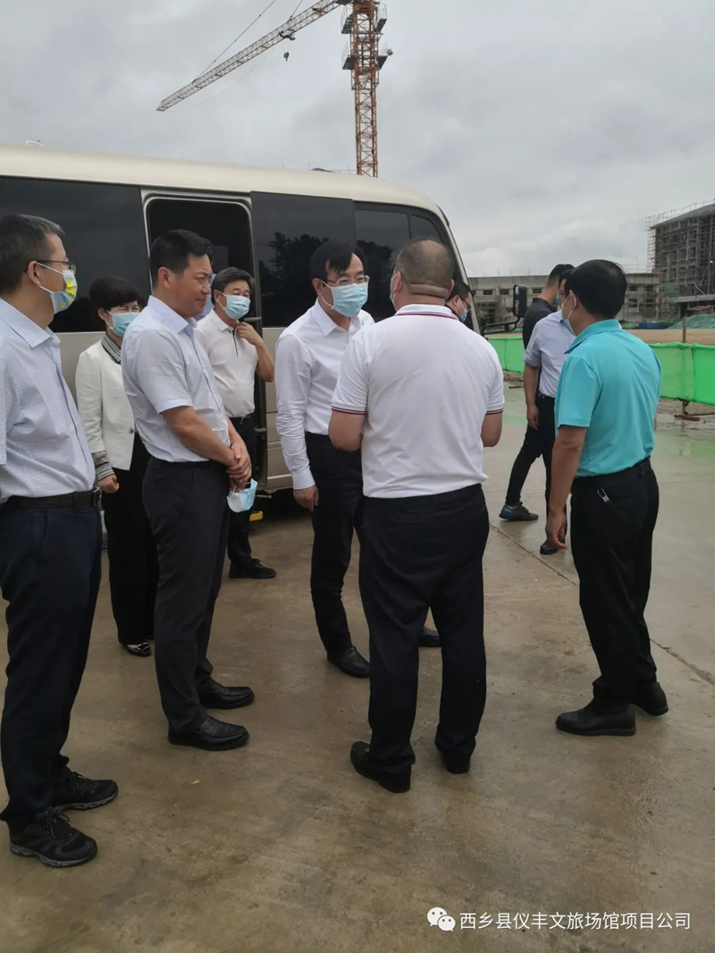 8月5日下午,细雨飘飞,市委书记钟洪江一行冒雨亲临文旅场馆建设项目工地现场调研市级重点项目,民生工程。西乡县县委书记李代斌、县长王亚珍、副书记张洪峰、县委常委黄维、发改局局长赵宏、文旅局局长糜建军等领导随行调研。文旅局副局长袁秀勇、项目公司总经理吴学贵、以及项目公司副总经理付玺如、杨洪川陪同。